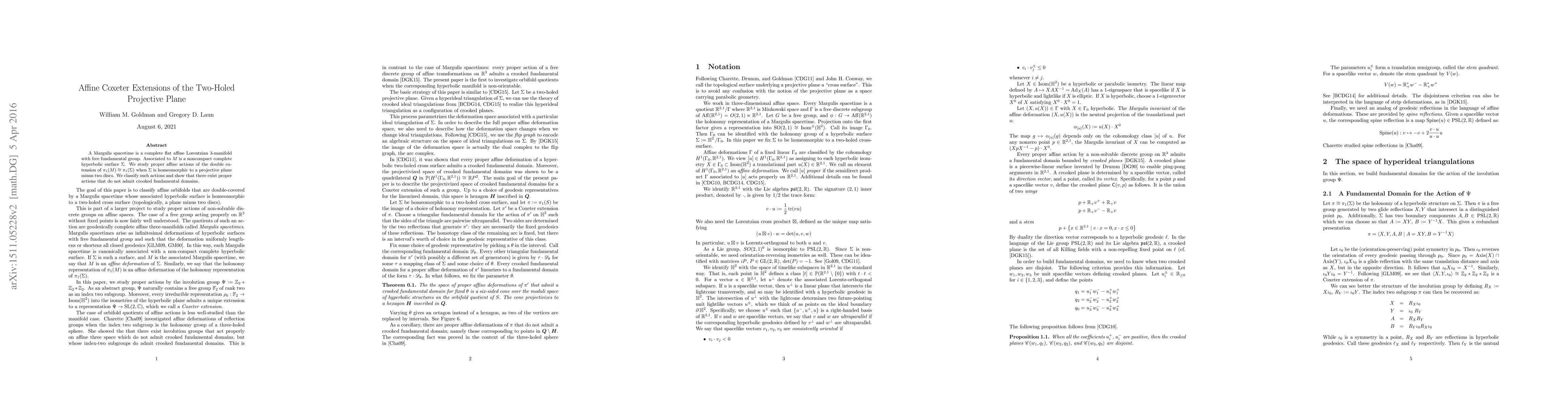 A Margulis spacetime is a complete flat affine Lorentzian 3-manifold with free fundamental group. Associated to $M$ is a noncompact complete hyperbolic surface $\Sigma$. We study double extensions of $\pi_1 (M) \cong \pi_1 (\Sigma)$ when $\Sigma$ is homeomorphic to a projective plane minus two discs. We classify proper actions of this double extension on Minkowski space and show that there exist proper actions that do not admit crooked fundamental domains.