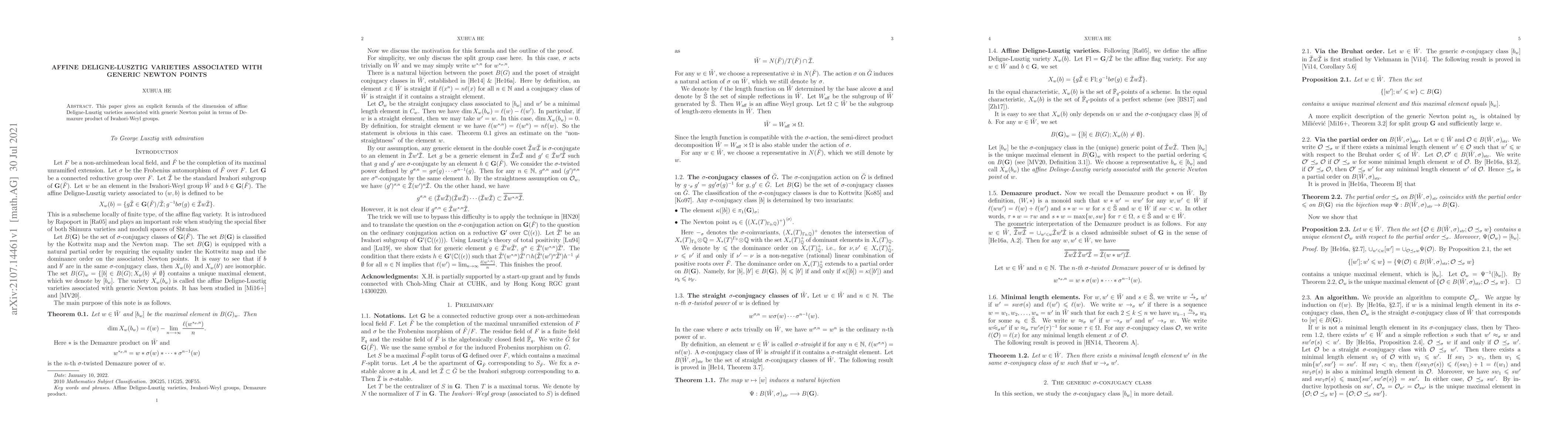 This paper provides an explicit formula for the dimension of affine Deligne-Lusztig varieties linked to generic Newton points, utilizing the Demazure product of Iwahori-Weyl groups. The results contribute to the understanding of the geometric and algebraic structures involved.