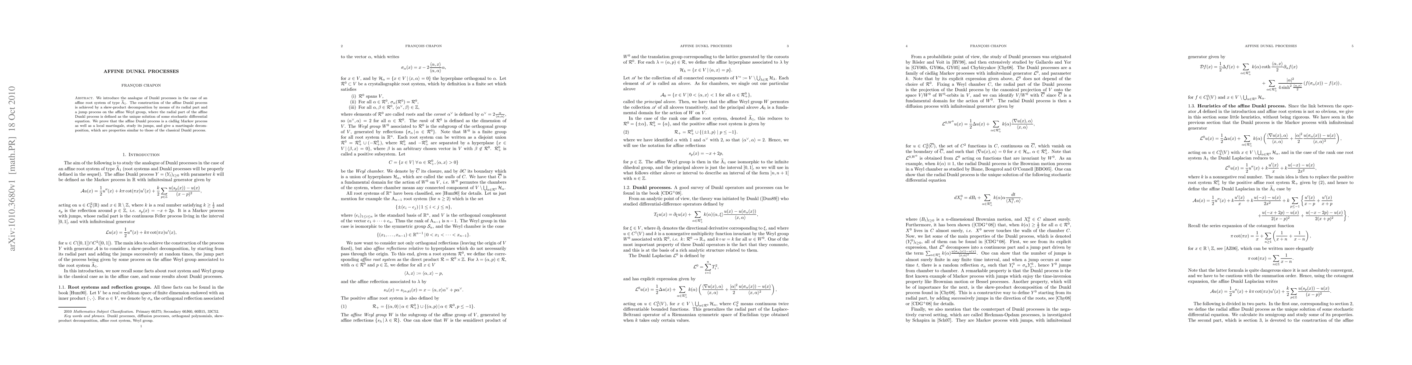 Researchers introduce the affine Dunkl process, a stochastic process that extends the classical Dunkl process to an affine root system of type A1, with properties including c\