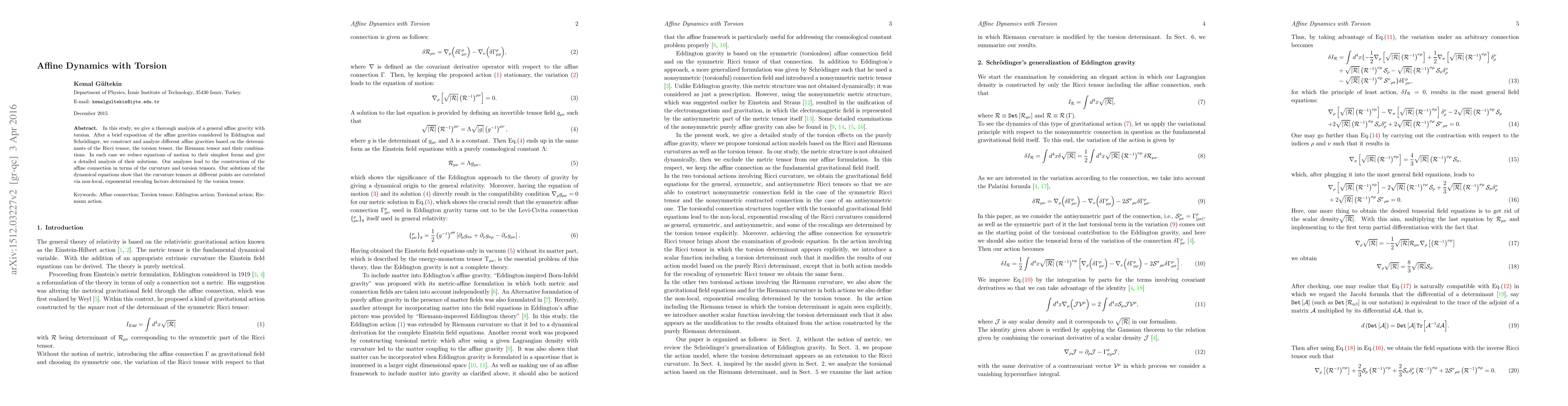 In this study, we give a thorough analysis of a general affine gravity with torsion. After a brief exposition of the affine gravities considered by Eddington and Schr\"{o}dinger, we construct and analyze different affine gravities based on the determinants of the Ricci tensor, the torsion tensor, the Riemann tensor and their combinations. In each case we reduce equations of motion to their simplest forms and give a detailed analysis of their solutions. Our analyses lead to the construction of the affine connection in terms of the curvature and torsion tensors. Our solutions of the dynamical equations show that the curvature tensors at different points are correlated via non-local, exponential rescaling factors determined by the torsion tensor.