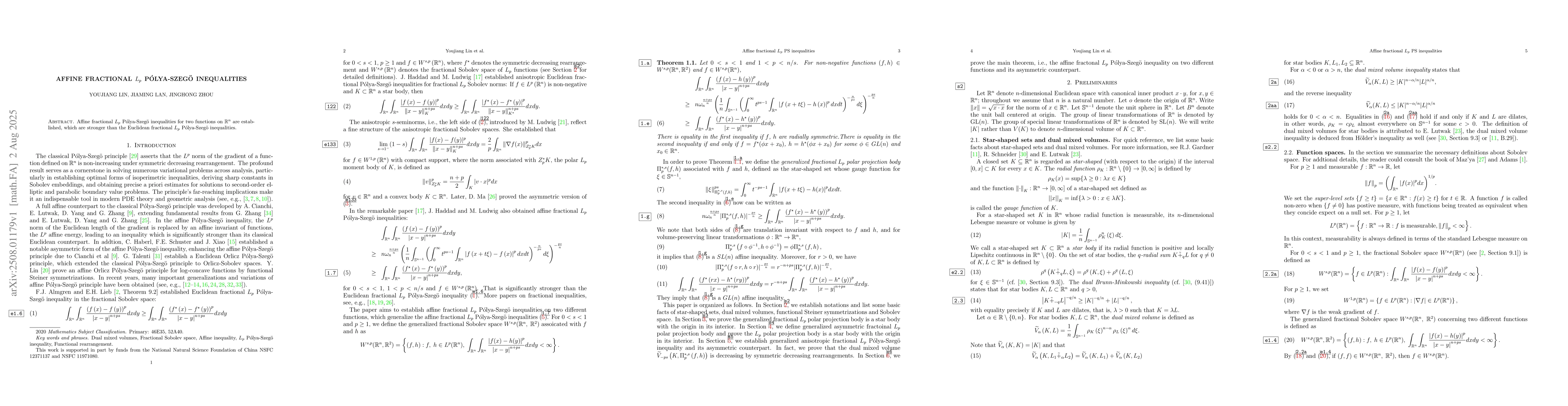 Affine fractional Lp Polya-Szego inequalities for two functions on R^n are established, which are stronger than the Euclidean fractional Lp Polya-Szego inequalities.