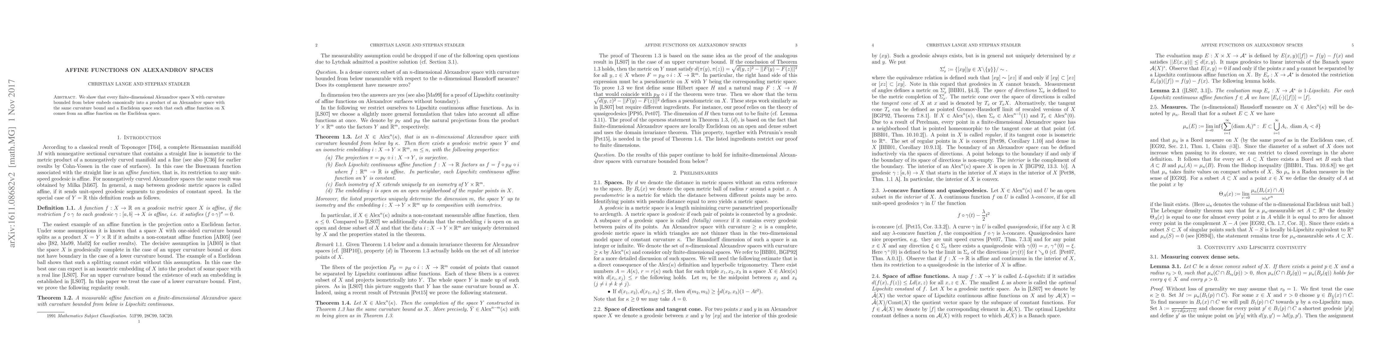 Researchers show that finite-dimensional Alexandrov spaces with bounded curvature can be embedded into a product of an Alexandrov space and a Euclidean space, allowing for the representation of affine functions on these spaces in terms of Euclidean geometry.