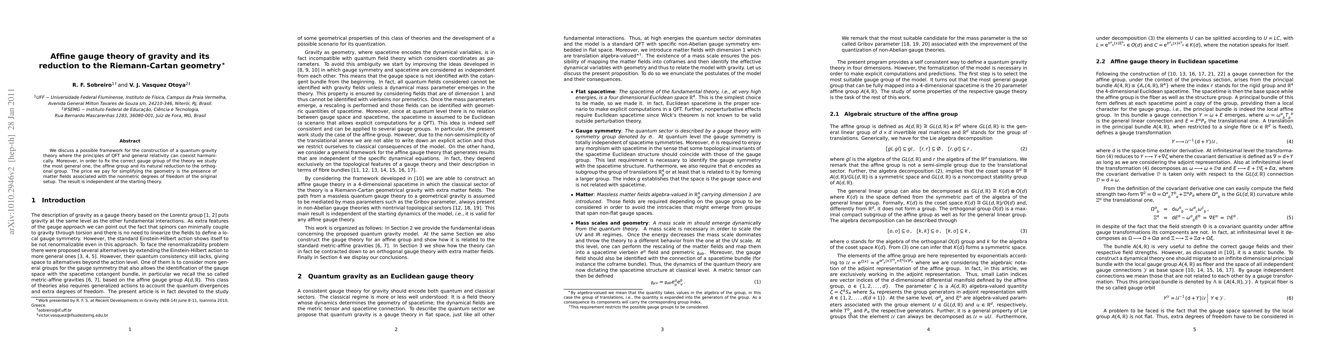 We discuss a possible framework for the construction of a quantum gravity theory where the principles of QFT and general relativity can coexist harmonically. Moreover, in order to fix the correct gauge group of the theory we study the most general one, the affine group and its natural reduction to the orthogonal group. The price we pay for simplifying the geometry is the presence of matter fields associated with the nonmetric degrees of freedom of the original setup. The result is independent of the starting theory.