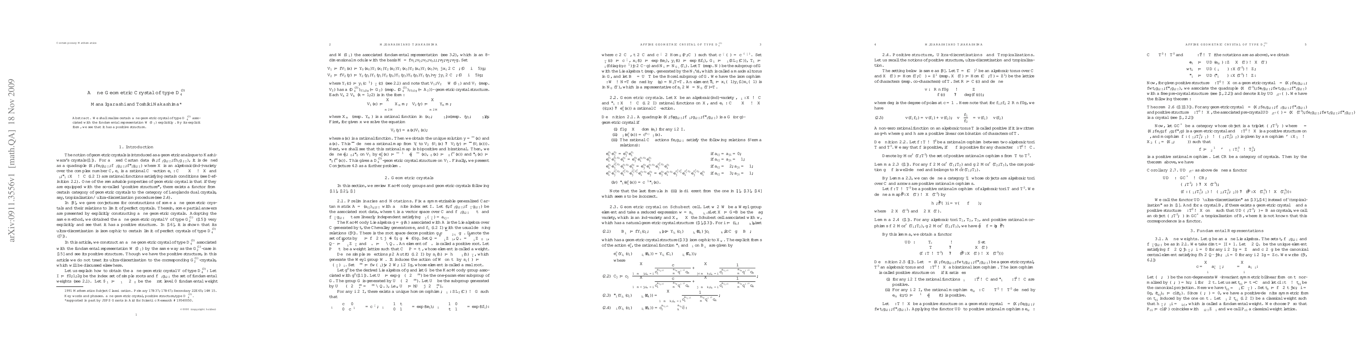 We shall realize certain affine geometric crystal of type $D_4^{(3)}$ associated with the fundamental representation $W(\pi_1)$ explicitly . By its explicit form, we see that it has a positive structure.