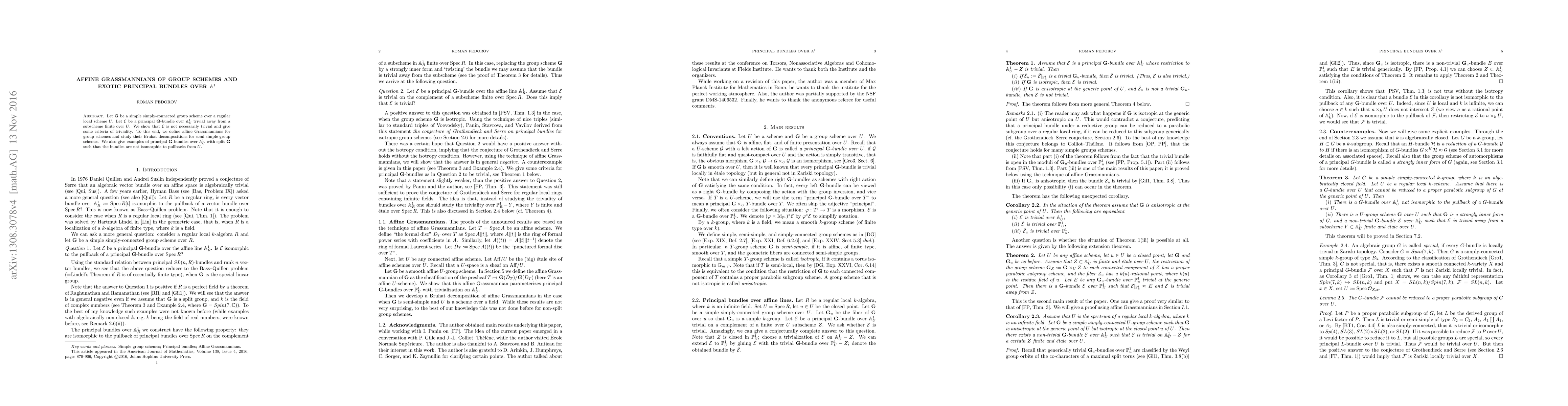 This paper investigates the properties of principal G-bundles over affine lines that are trivial away from a finite subscheme, defining affine Grassmannians for group schemes and exploring their Bruhat decompositions. It demonstrates that such bundles need not be trivial and provides criteria for their triviality, along with examples of non-isomorphic principal bundles over affine spaces.