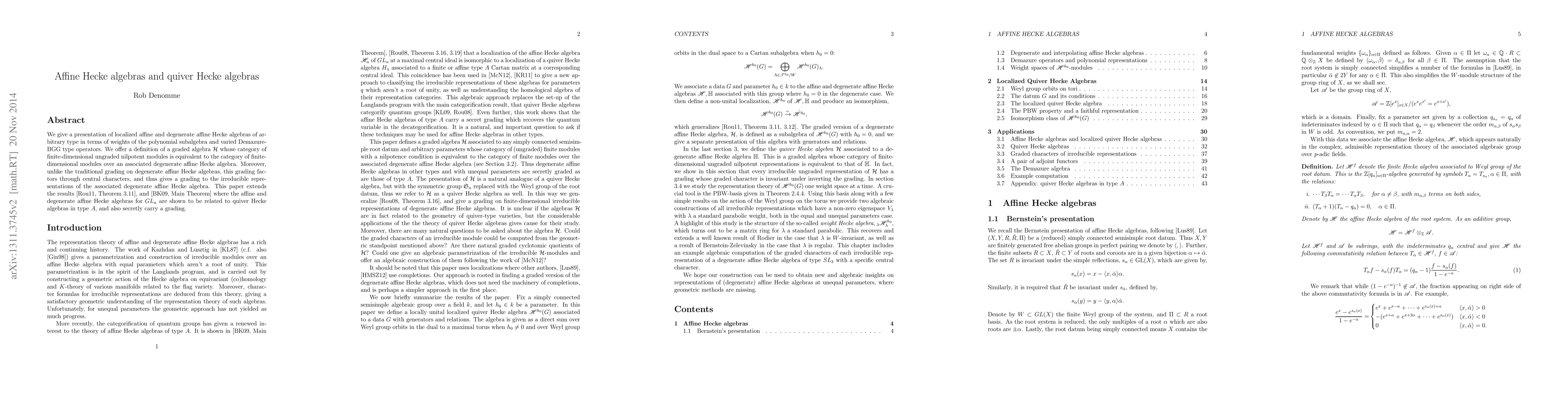 This paper presents localized affine and degenerate affine Hecke algebras using weights and operators, defining a graded algebra $\mathcal{H}$ that relates to degenerate affine Hecke algebras via a novel grading tied to central characters. This extends prior work linking these algebras to quiver Hecke algebras and introduces a new perspective on their irreducible representations.
