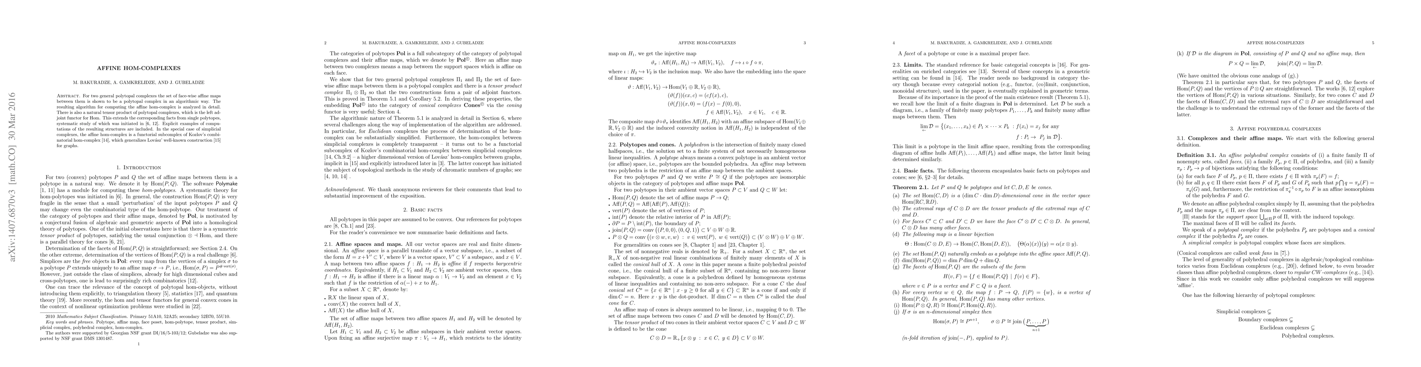 This paper introduces an algorithm to construct a polytopal complex from affine maps between two general polytopal complexes, demonstrating its properties and analyzing its tensor product structure. It also illustrates the special case of simplicial complexes and their relationship to combinatorial hom-complexes.