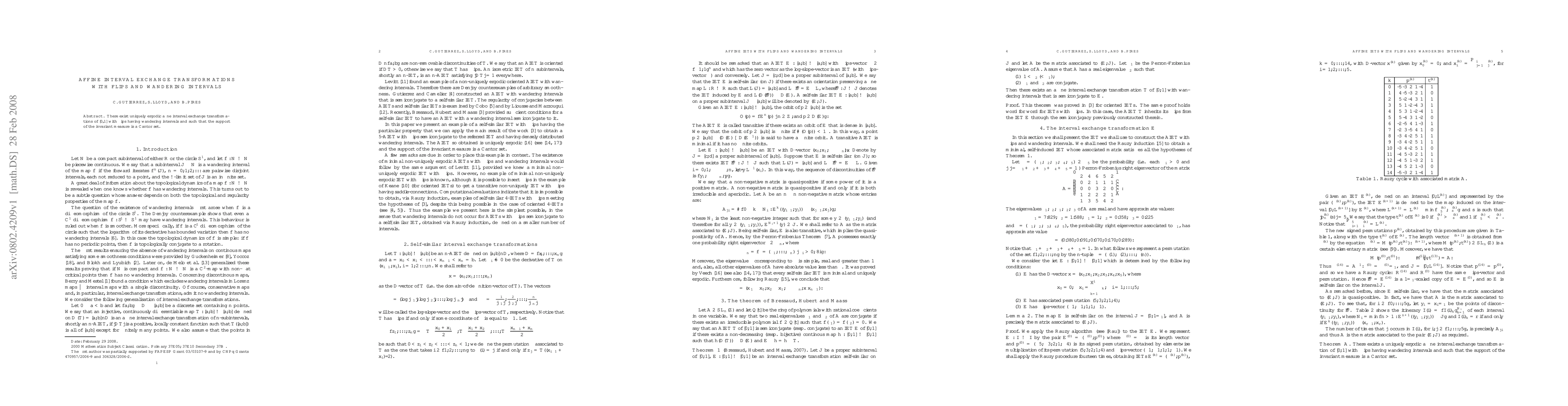 Summary: This paper explores uniquely ergodic affine interval exchange transformations on the interval [0,1] that include flips, revealing the existence of wandering intervals and a Cantor set as the support of the invariant measure. The study highlights the complex dynamics within these transformations.