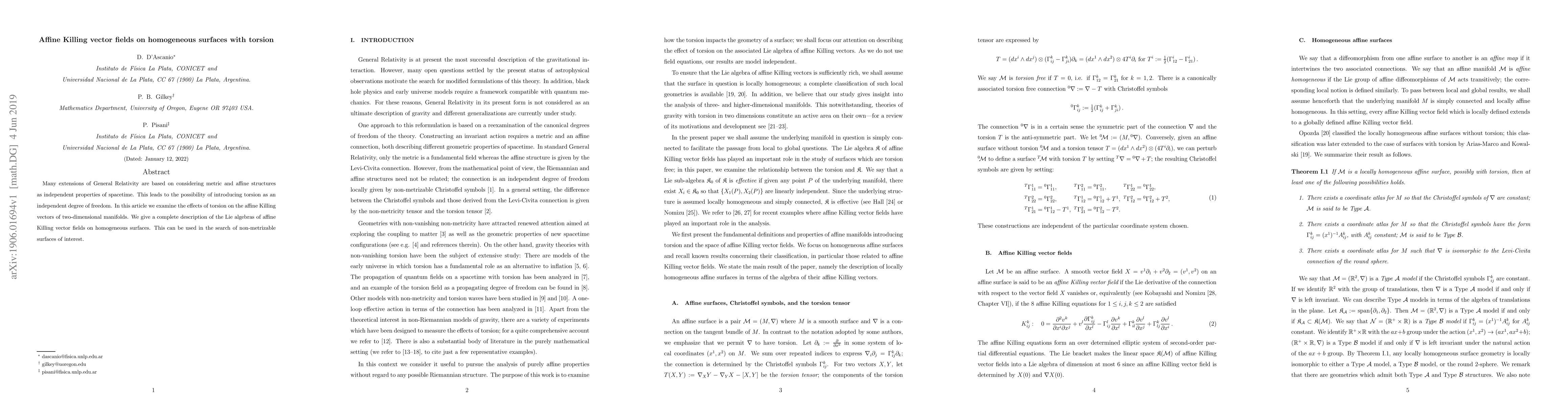This paper investigates the impact of torsion on affine Killing vectors in two-dimensional homogeneous surfaces, providing a comprehensive description of the associated Lie algebras. This analysis aids in identifying non-metrizable surfaces relevant to extensions of General Relativity.