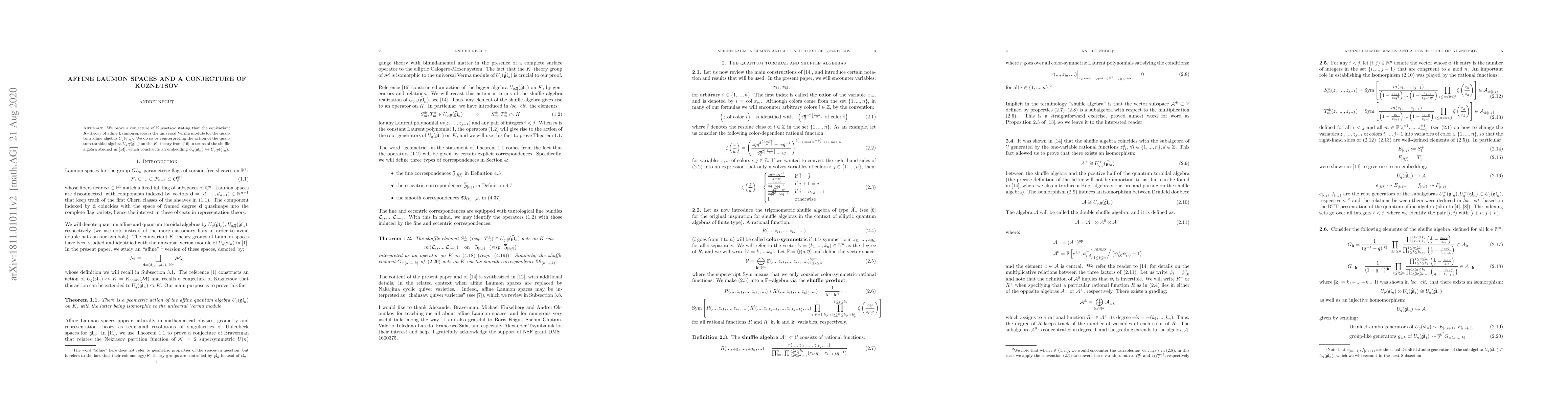 The paper proves Kuznetsov's conjecture regarding the equivariant K-theory of affine Laumon spaces, showing it aligns with the universal Verma module for the quantum affine algebra U_q(gl_n). The proof utilizes a reinterpretation of the quantum toroidal algebra U_q(gl_n^^) through the shuffle algebra.