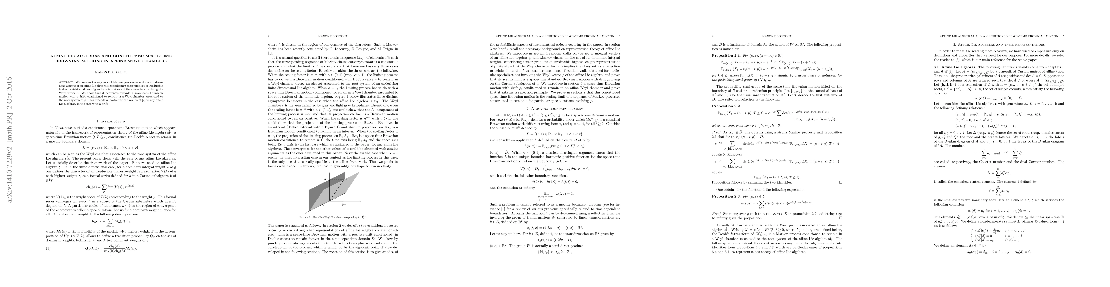 Researchers create a stochastic process on dominant weights of an affine Lie algebra that converges to a space-time Brownian motion with drift in a specific Weyl chamber.