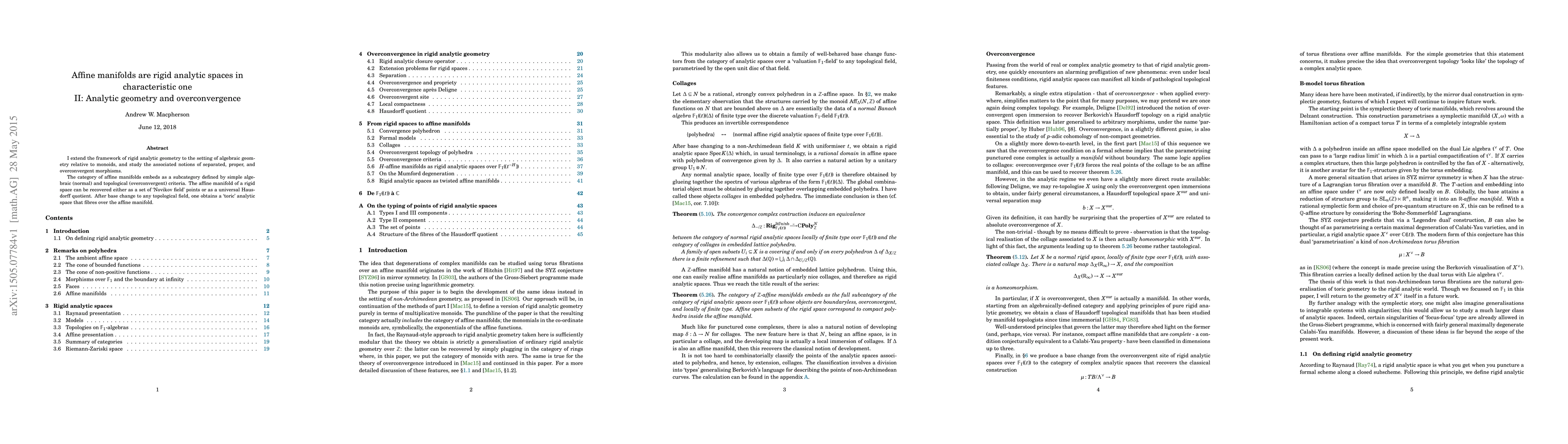 I extend the framework of rigid analytic geometry to the setting of algebraic geometry relative to monoids, and study the associated notions of separated, proper, and overconvergent morphisms. The category of affine manifolds embeds as a subcategory defined by simple algebraic (normal) and topological (overconvergent) criteria. The affine manifold of a rigid space can be recovered either as a set of `Novikov field' points or as a universal Hausdorff quotient. After base change to any topological field, one obtains a `toric' analytic space that fibres over the affine manifold.