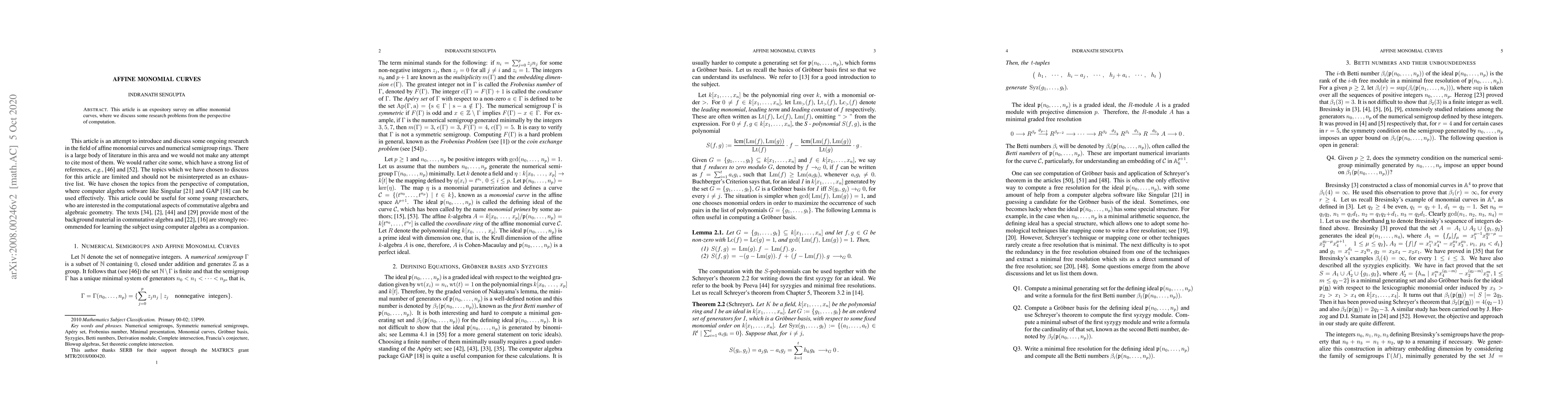 Summary: This paper explores computational challenges related to affine monomial curves, aiming to address various research problems in this area. It focuses on the mathematical properties and computational techniques applicable to these curves.