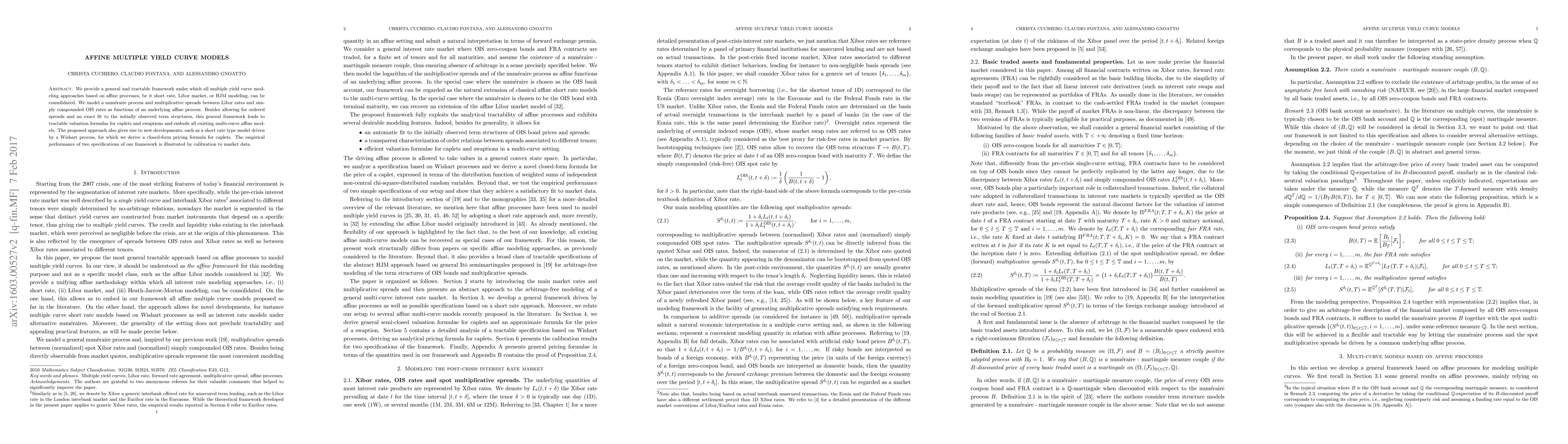 This paper presents a unified framework for multiple yield curve models based on affine processes, consolidating various approaches and enabling tractable valuation of derivatives like caplets and swaptions. The framework also introduces a new short rate model driven by a Wishart process with a closed-form caplet pricing formula, and demonstrates empirical effectiveness through market data calibration.