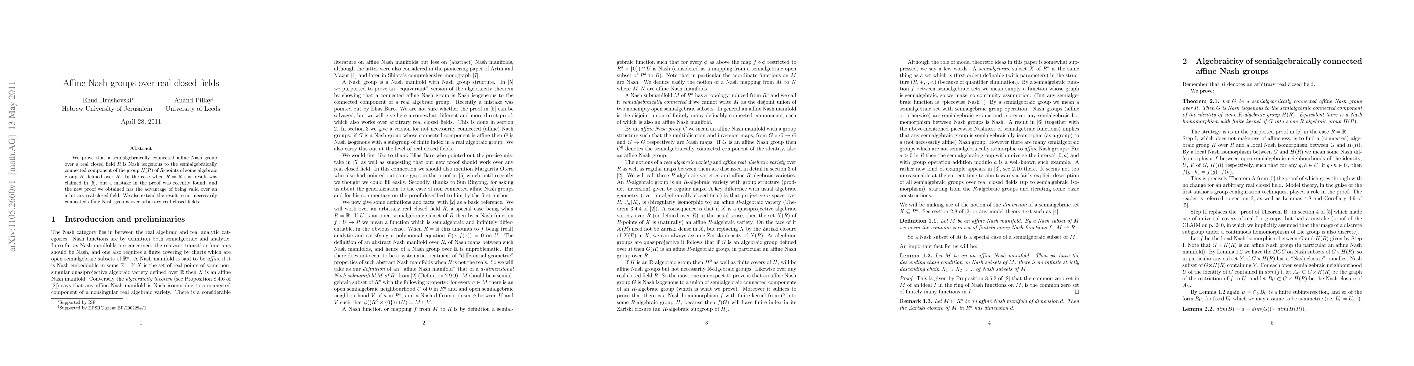 This paper proves that a semialgebraically connected affine Nash group over a real closed field is Nash isogenous to the semialgebraically connected component of an algebraic group defined over the same field. The result extends to non-connected groups and corrects a previous error in a similar claim for the field of real numbers.