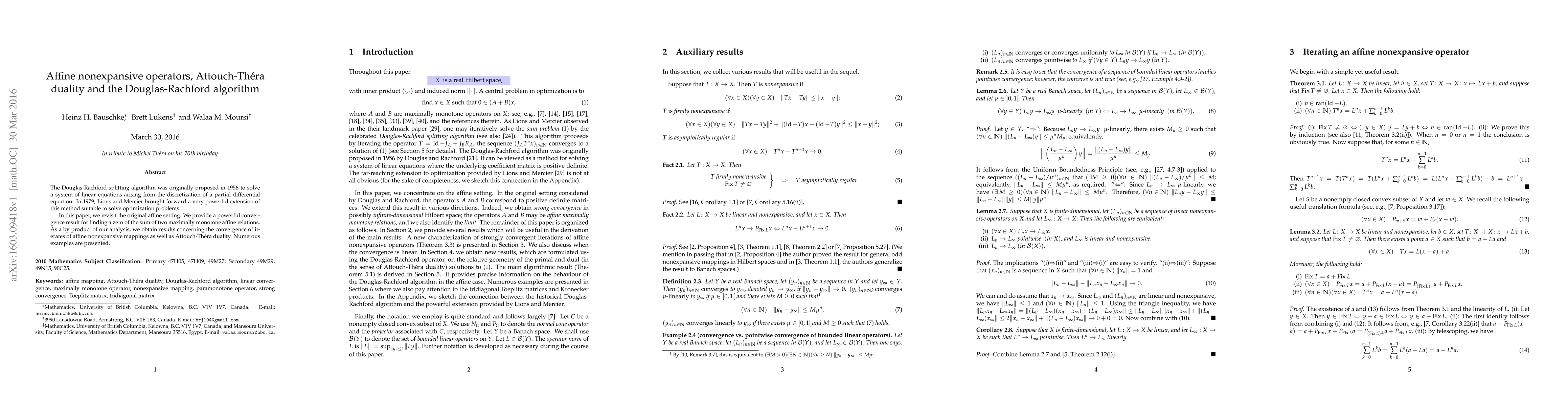 This paper revisits the Douglas-Rachford algorithm in its original affine setting, providing a convergence result for finding zeros of sums of two maximally monotone affine relations. It also explores the convergence of affine nonexpansive mappings and applies Attouch-Théra duality, supplemented by numerous examples.