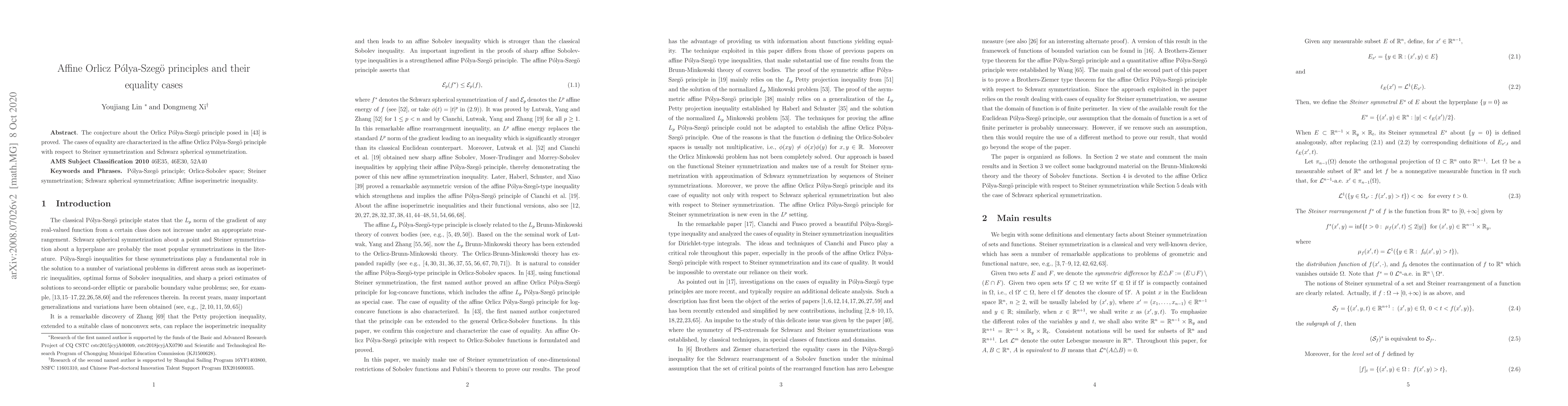 The paper proves the conjecture regarding the Orlicz Pólya-Szegő principle and identifies the equality cases in affine Orlicz Pólya-Szegő principles through Steiner and Schwarz spherical symmetrization.