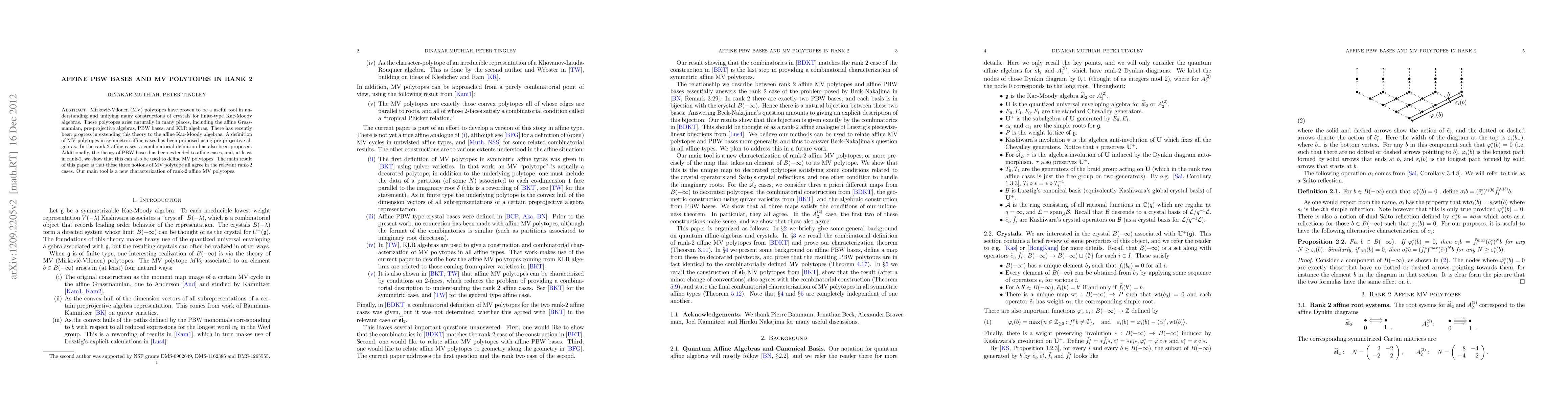 This paper establishes the equivalence of three definitions of Mirkovic-Vilonen (MV) polytopes in rank-2 affine Kac-Moody algebras, using pre-projective algebras, PBW bases, and combinatorial methods. The key result is that these three approaches converge in rank-2, providing a unified understanding of MV polytopes.