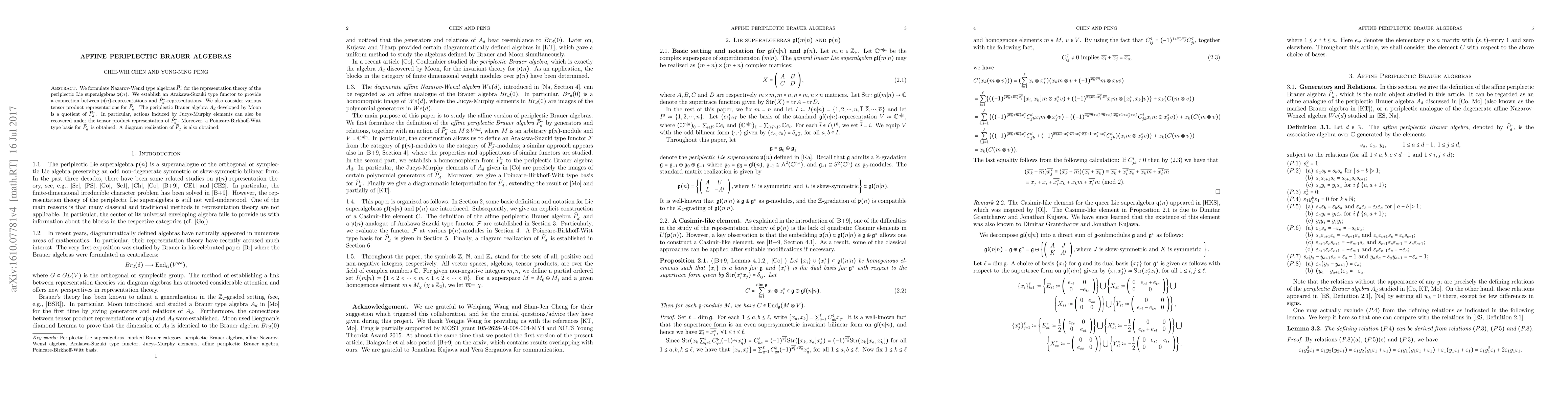 We formulate Nazarov-Wenzl type algebras ${\widehat{P}_d^-}$ for the representation theory of the Periplectic Lie superalgebras $\mathfrak{p}(n)$. We establish a Arakawa-Suzuki type theorem to provide a connection between $\mathfrak{p}(n)$-representations and $\widehat{P}_d^-$-representations. We also consider various tensor product representations for $\widehat{P}_d^-$. The periplectic Brauer algebra $A_d$ defined by Moon is an quotient of $\widehat{P}_d^-$. In particular, actions induced by Jucys-Murphy elements can be obtained under the tensor product representation of $\widehat{P}_d^-$. Also, a Poincare-Birkhoff-Witt type basis for $\widehat{P}_d^-$ is obtained.