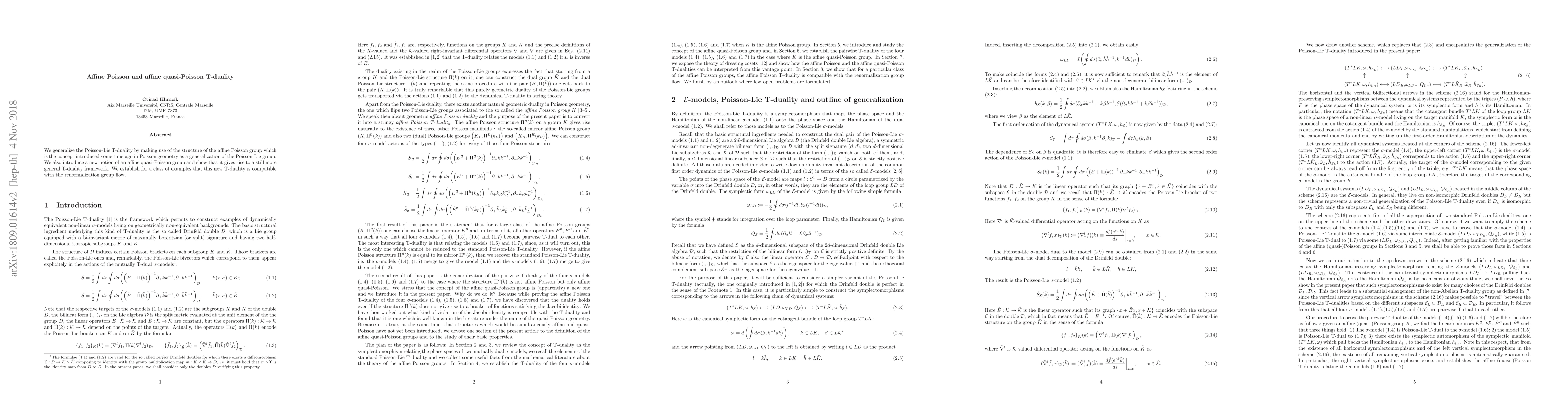 Researchers develop a new T-duality framework based on affine Poisson and quasi-Poisson groups, showing compatibility with renormalization group flow in certain examples.