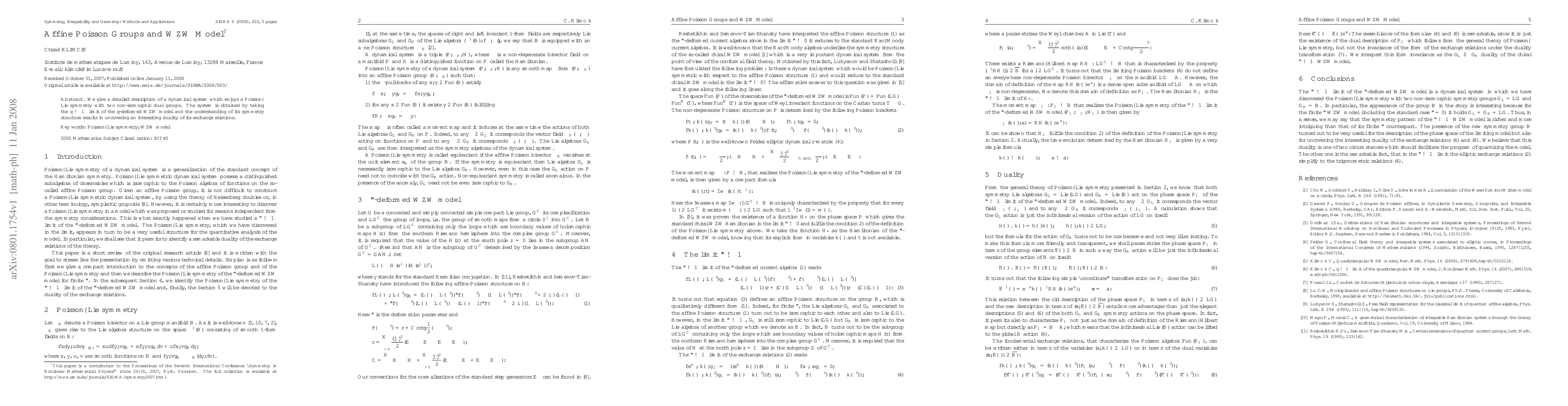 We give a detailed description of a dynamical system which enjoys a Poisson-Lie symmetry with two non-isomorphic dual groups. The system is obtained by taking the $q\to\infty$ limit of the q-deformed WZW model and the understanding of its symmetry structure results in uncovering an interesting duality of its exchange relations.