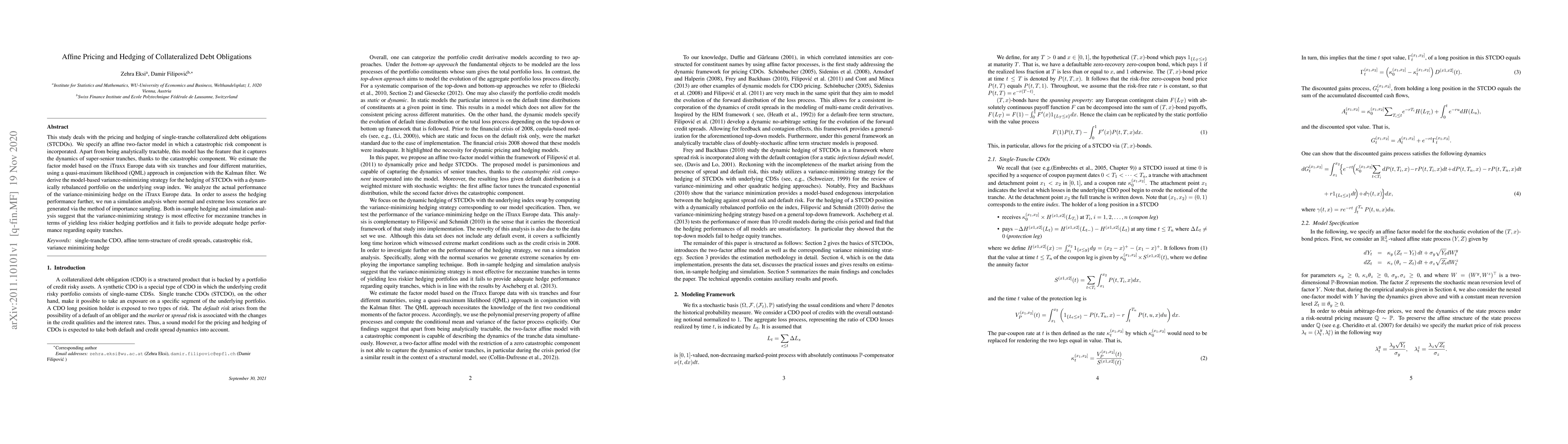 This study proposes an affine two-factor model for pricing and hedging single-tranche collateralized debt obligations (STCDOs), incorporating a catastrophic risk component. The model is estimated using iTraxx Europe data and shows that the variance-minimizing hedging strategy is most effective for mezzanine tranches but inadequate for equity tranches.