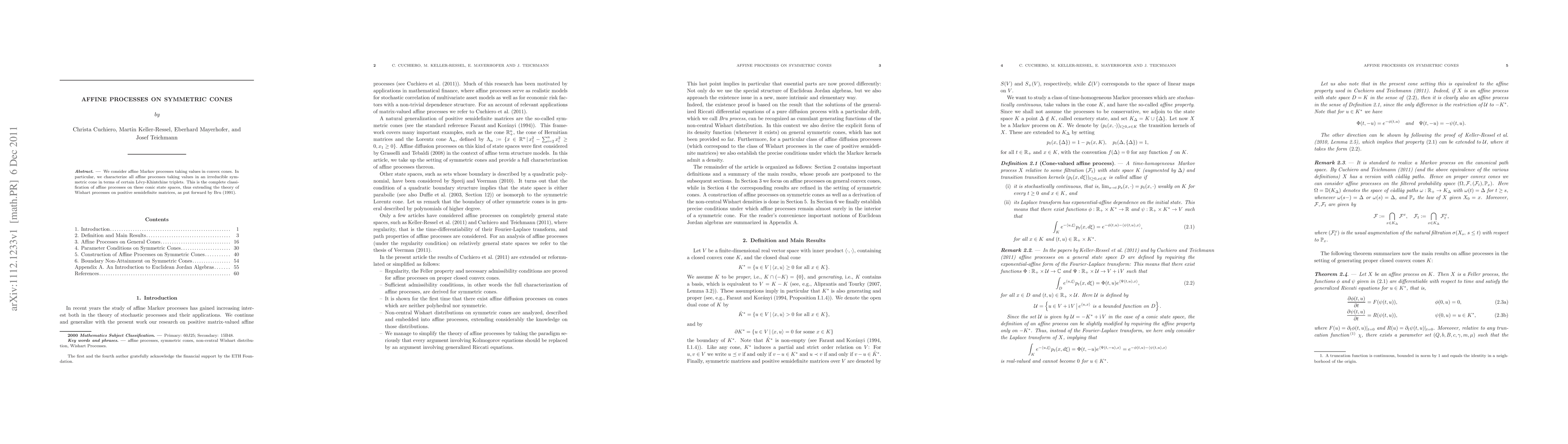 This paper classifies affine Markov processes on irreducible symmetric cones using L\'evy-Khintchine triplets, providing a complete characterization and extending the theory of Wishart processes on positive semidefinite matrices.