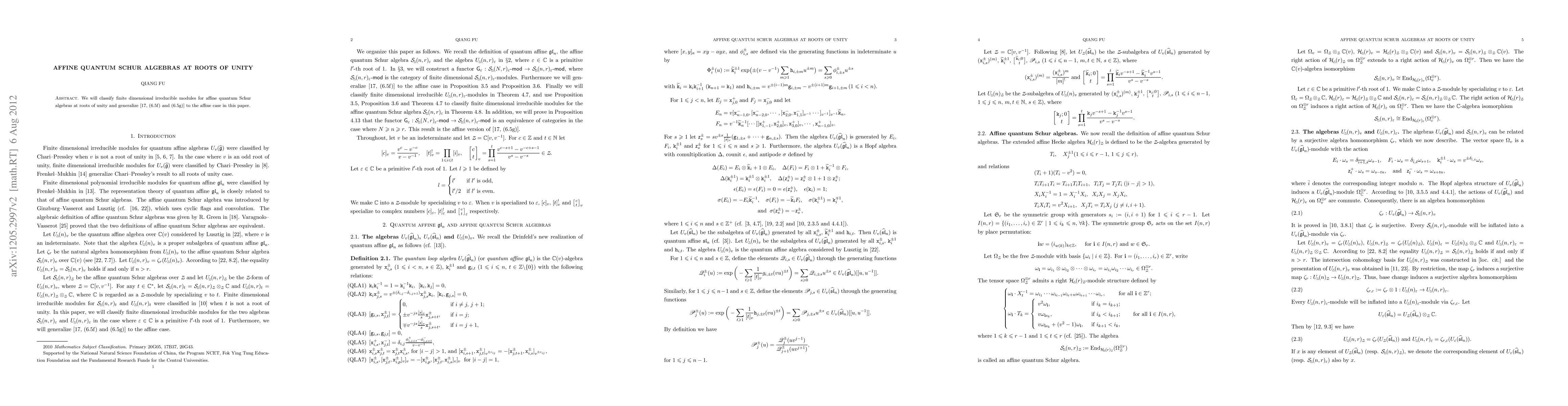 The paper introduces and utilizes a functor Gε to relate modules over affine quantum Schur algebras of different ranks, enabling the classification of irreducible modules.