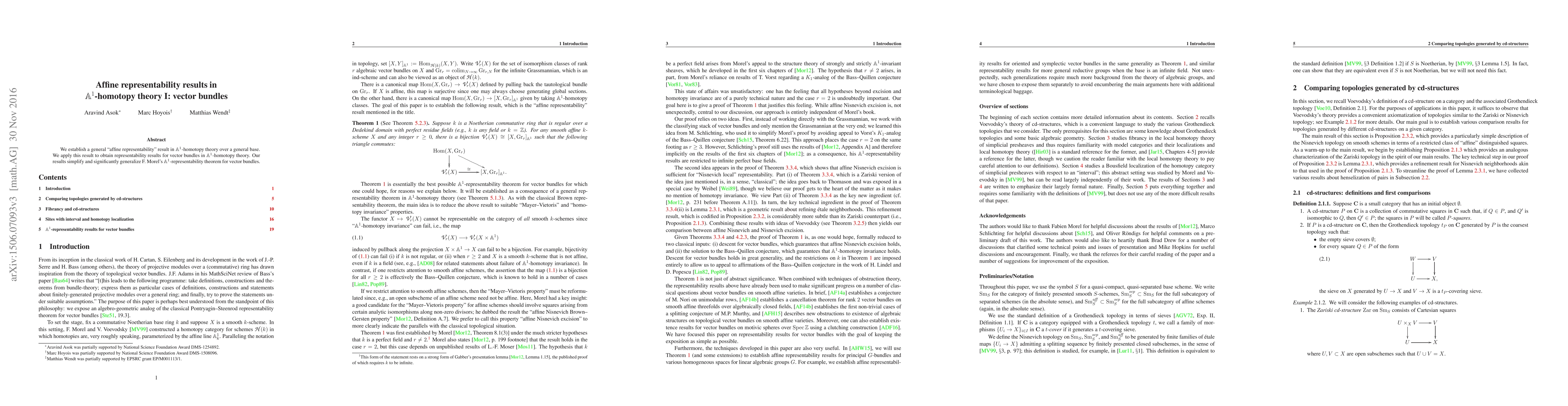 The paper establishes a new "affine representability" result in ${\mathbb A}^1$-homotopy theory, providing a general framework that simplifies and significantly extends F. Morel's existing ${\mathbb A}^1$-representability theorem for vector bundles.