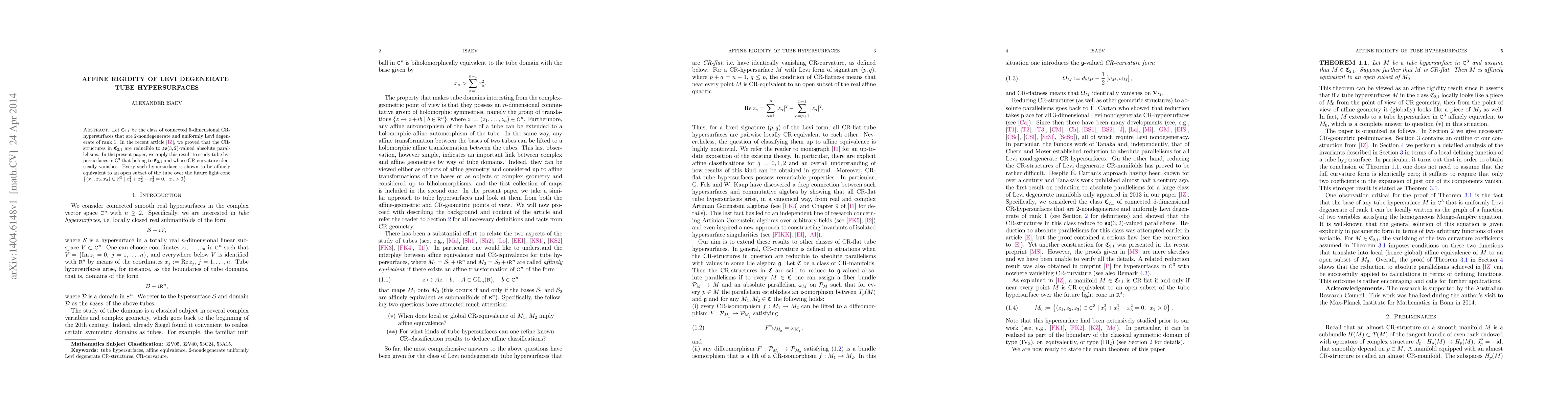 The paper establishes a reduction of CR-structures in C(2,1) to absolute parallelisms, leading to a characterization of certain tube hypersurfaces in C^3 via affine equivalence to the tube over the future light cone.