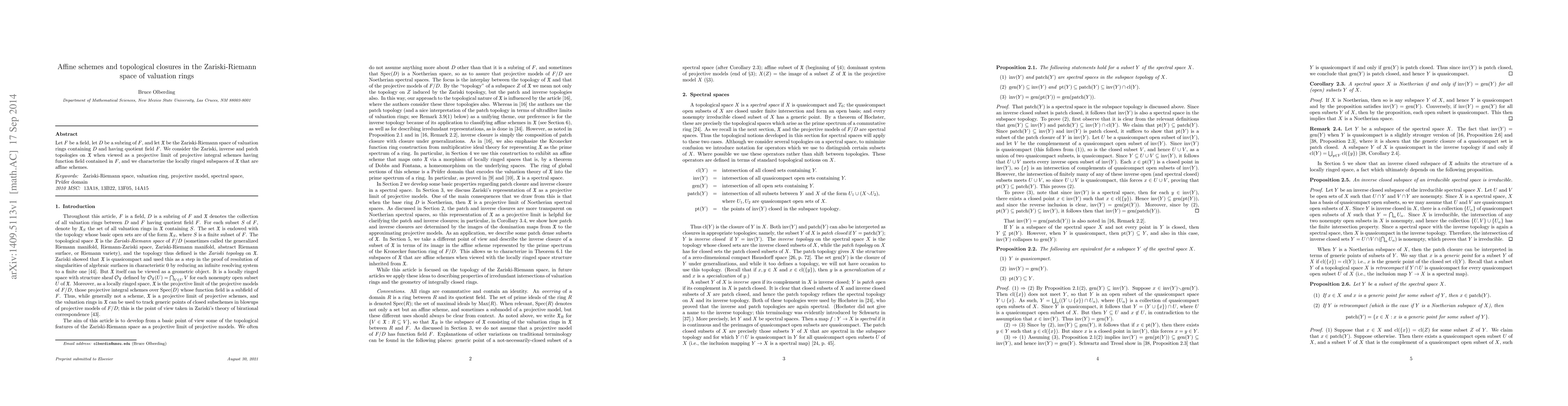 This paper studies the Zariski-Riemann space ${\mathfrak{X}}$ of valuation rings containing a subring $D$ of a field $F$, examining the topologies on ${\mathfrak{X}}$ and characterizing its affine scheme subspaces as projective limits of projective integral schemes.