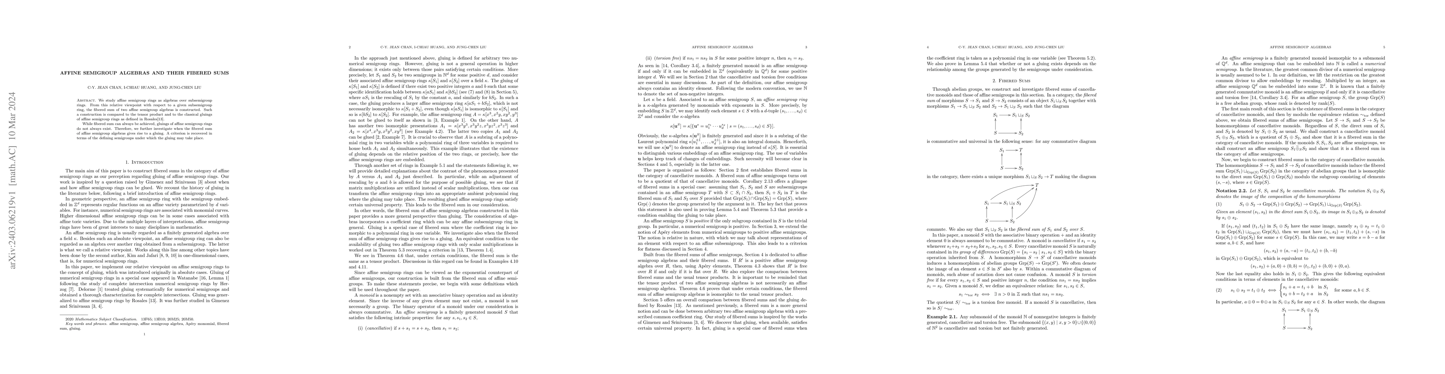 This paper explores affine semigroup rings relative to subsemigroup rings, constructing fibered sums and comparing them to tensor products and classical gluings. It identifies conditions under which the fibered sum results in a valid gluing, offering a criterion based on defining semigroups.