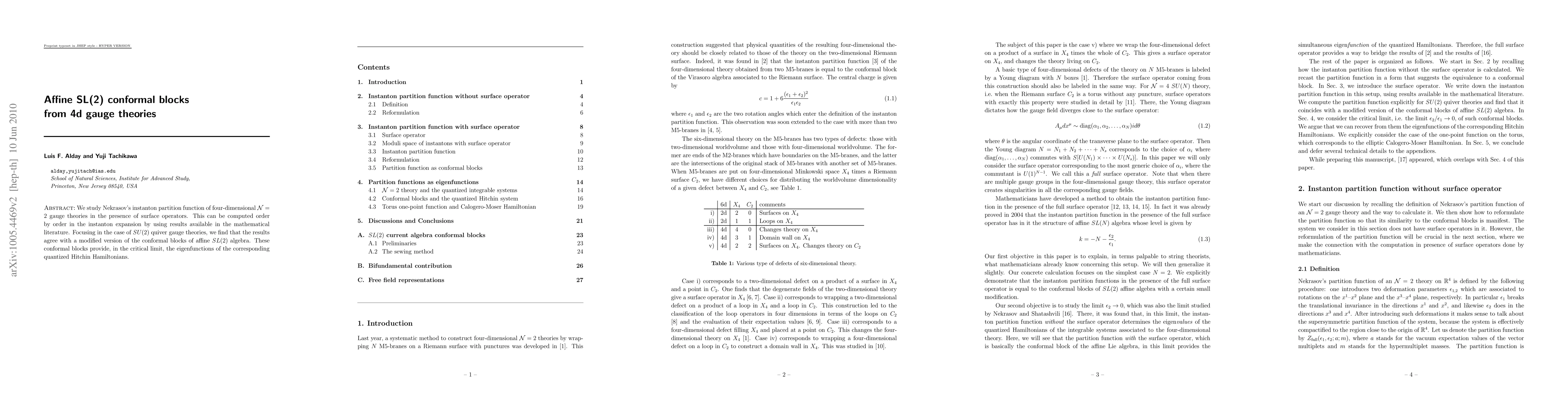 This paper investigates Nekrasov's instanton partition function in 4d N=2 gauge theories with surface operators, showing agreement with modified affine SL(2) conformal blocks for SU(2) quiver theories, which serve as eigenfunctions for the quantized Hitchin Hamiltonians in the critical limit.