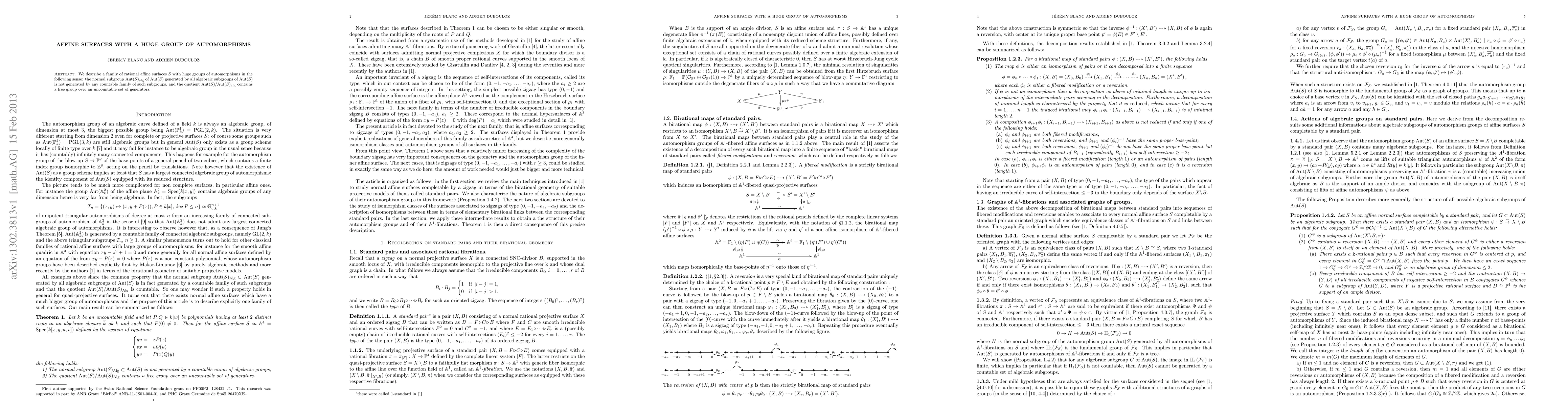 Summary: This paper explores a family of rational affine surfaces with exceptionally large automorphism groups, where the normal subgroup generated by algebraic subgroups cannot be generated by any countable set, and the quotient group contains a free group with uncountably many generators.