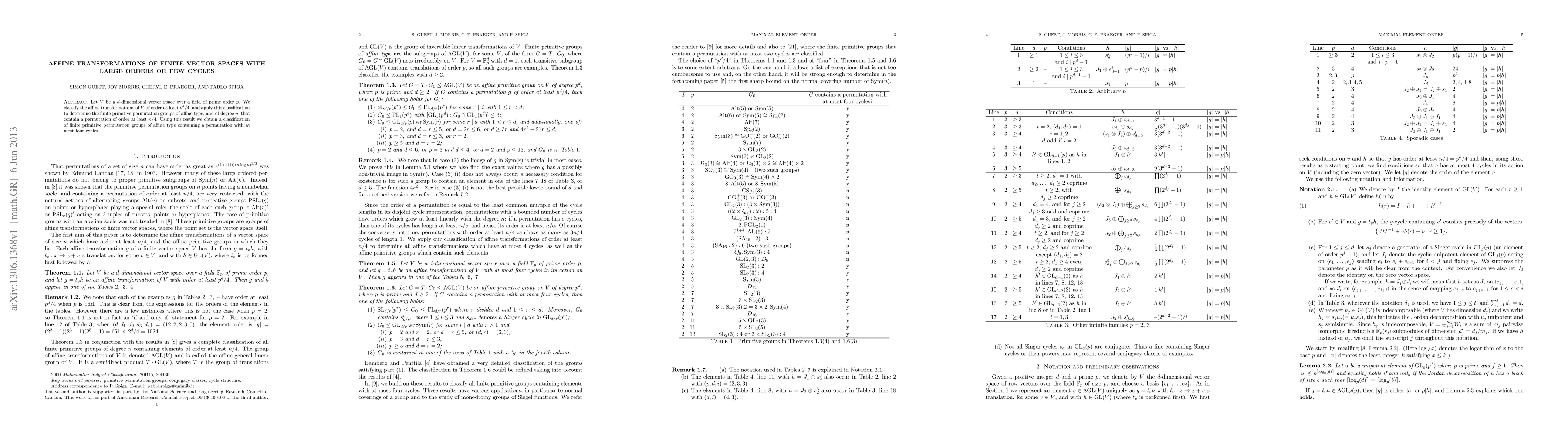 Let V be a d-dimensional vector space over a field of prime order p. We classify the affine transformations of V of order at least p^d/4, and apply this classification to determine the finite primitive permutation groups of affine type, and of degree n, that contain a permutation of order at least n/4. Using this result we obtain a classification of finite primitive permutation groups of affine type containing a permutation with at most four cycles.