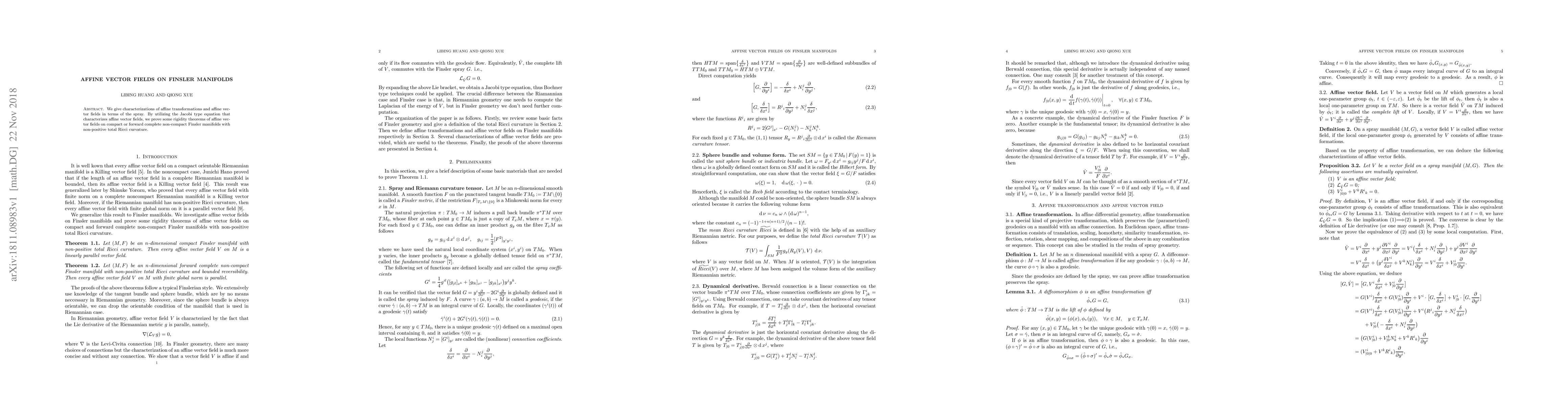 Summary: This paper characterizes affine transformations and vector fields on Finsler manifolds using sprays, and proves rigidity theorems for such fields on manifolds with specific curvature conditions. The study leverages a Jacobi type equation to achieve these results.