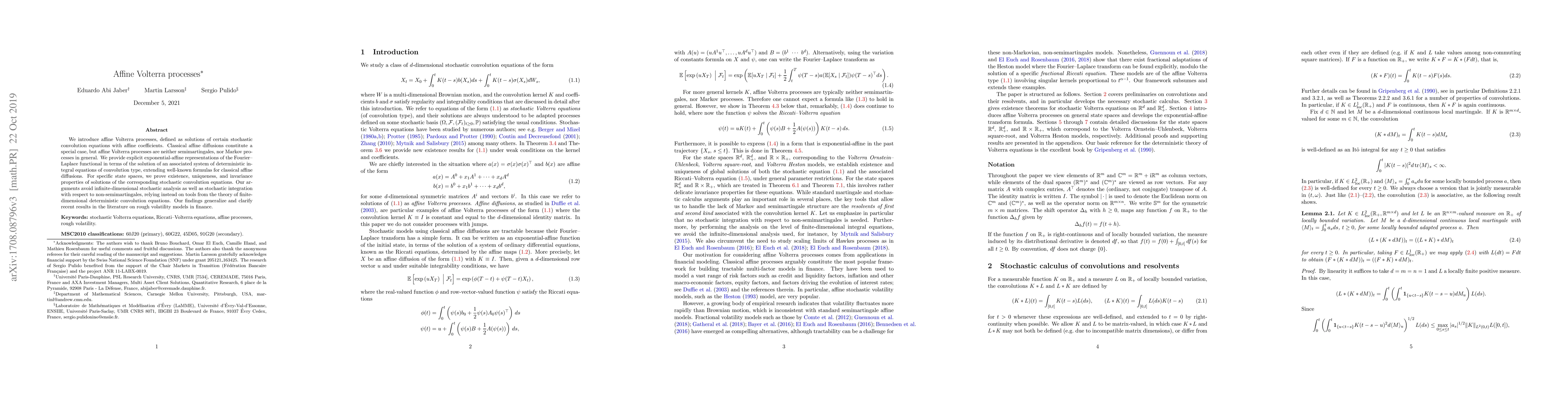 This paper introduces affine Volterra processes, which are solutions to stochastic convolution equations with affine coefficients, extending beyond classical affine diffusions. It provides explicit representations of their Fourier-Laplace functionals and proves existence, uniqueness, and invariance properties, using deterministic convolution equation tools instead of infinite-dimensional stochastic analysis.
