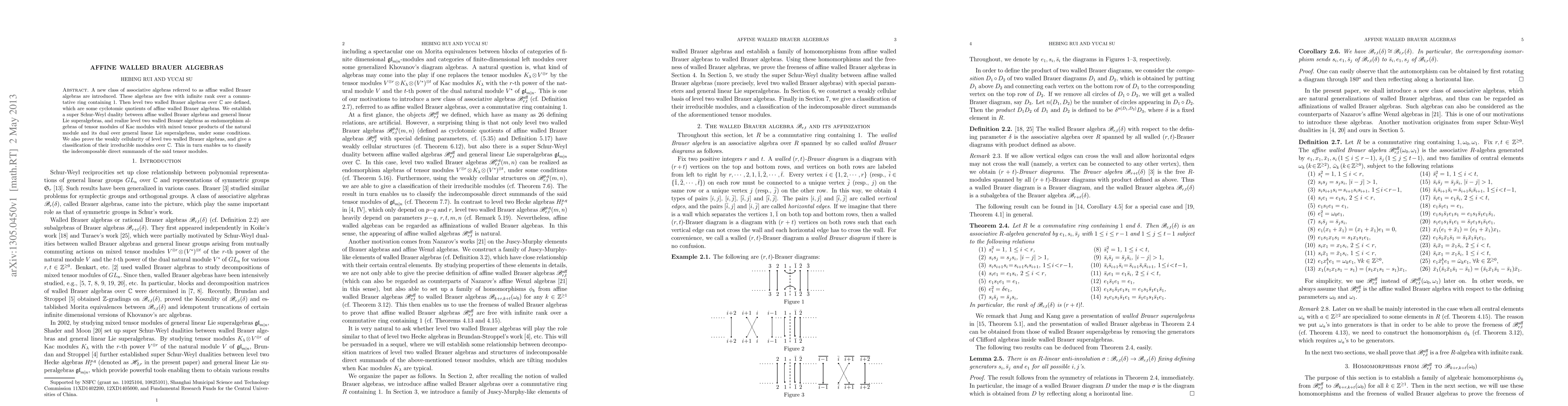 The paper introduces and studies affine walled Brauer algebras, establishes a super Schur-Weyl duality, and constructs a weakly cellular basis, providing a comprehensive framework for understanding these algebraic structures.
