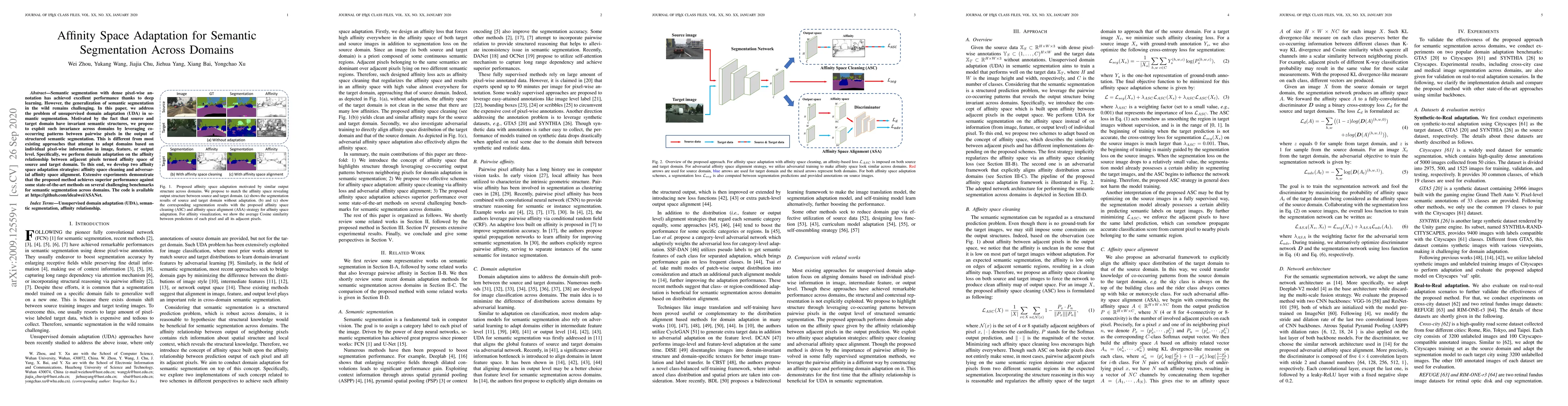 This paper proposes a novel unsupervised domain adaptation method for semantic segmentation by leveraging invariant semantic structures across domains through affinity space adaptation. The method includes affinity space cleaning and adversarial affinity space alignment, achieving superior performance on several benchmarks.