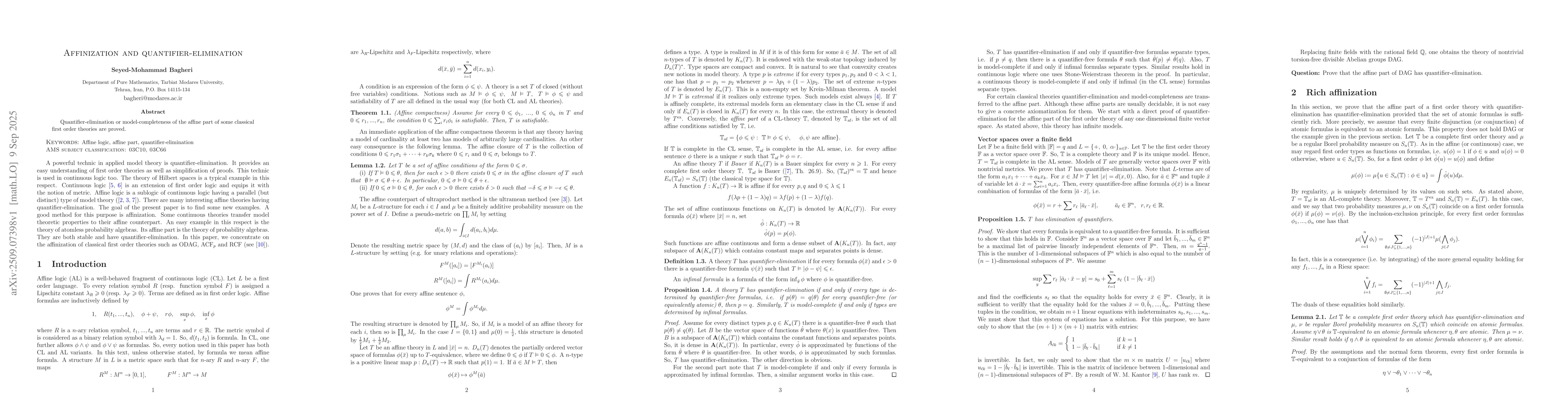 Quantifier-elimination or model-completeness of the affine part of some classical first order theories are proved.