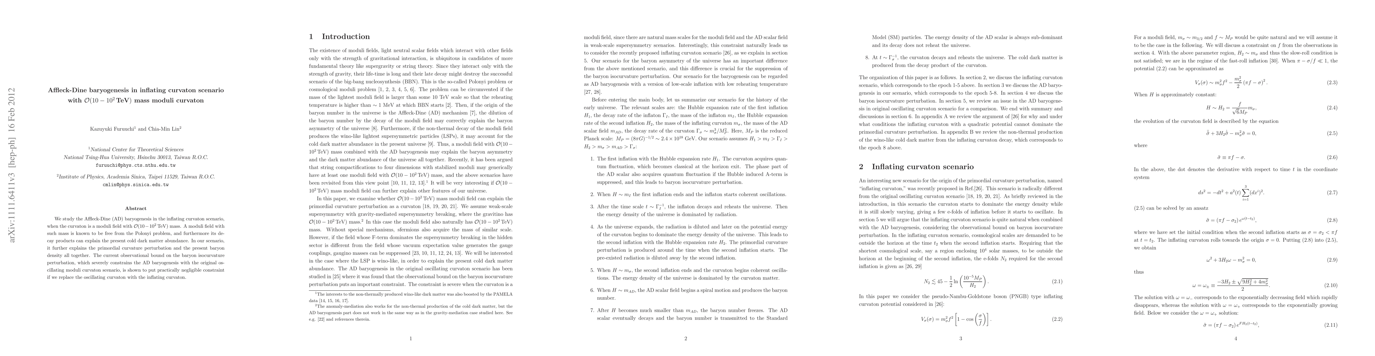 This paper explores Affleck-Dine baryogenesis within an inflating curvaton framework where the curvaton is a high-mass moduli field (O($10-10^2$ TeV)). It demonstrates that such a curvaton can evade the Polonyi problem and explain the observed cold dark matter abundance, primordial curvature perturbations, and baryon density without significant constraints from baryon isocurvature perturbations.