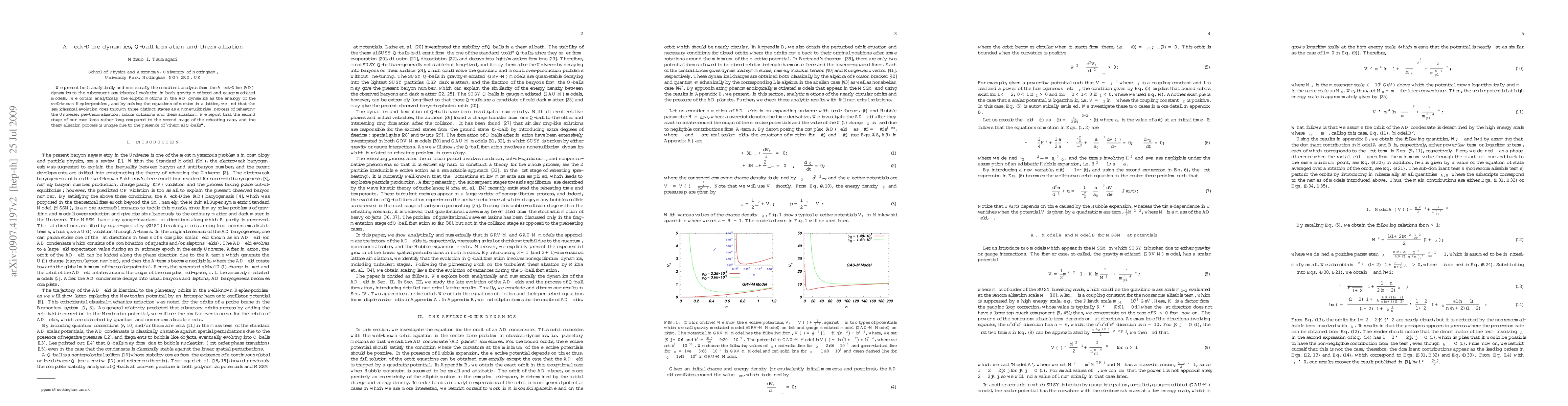Researchers analyze the Affleck-Dine dynamics to semiclassical evolution in gravity-mediated and gauge-mediated models, finding three distinct stages of reheating including pre-thermalisation, bubble collisions, and unique thermal Q-ball formation.