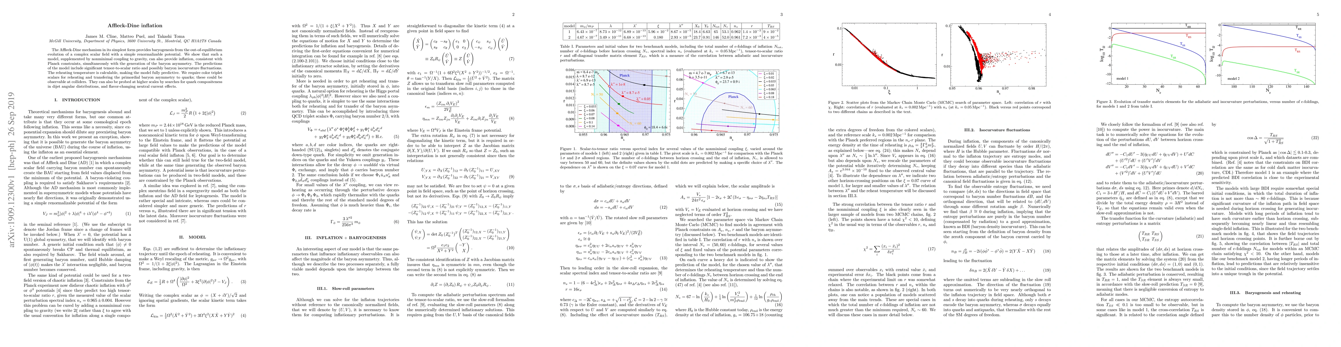 The Affleck-Dine mechanism in its simplest form provides baryogenesis from the out-of-equilibrium evolution of a complex scalar field with a simple renormalizable potential. We show that such a model, supplemented by nonminimal coupling to gravity, can also provide inflation, consistent with Planck constraints, simultaneously with the generation of the baryon asymmetry. The predictions of the model include significant tensor-to-scalar ratio and possibly baryon isocurvature fluctuations. The reheating temperature is calculable, making the model fully predictive. We require color triplet scalars for reheating and transfering the primordial baryon asymmetry to quarks; these could be observable at colliders. They can also be probed at higher scales by searches for quark compositeness in dijet angular distributions, and flavor-changing neutral current effects.
