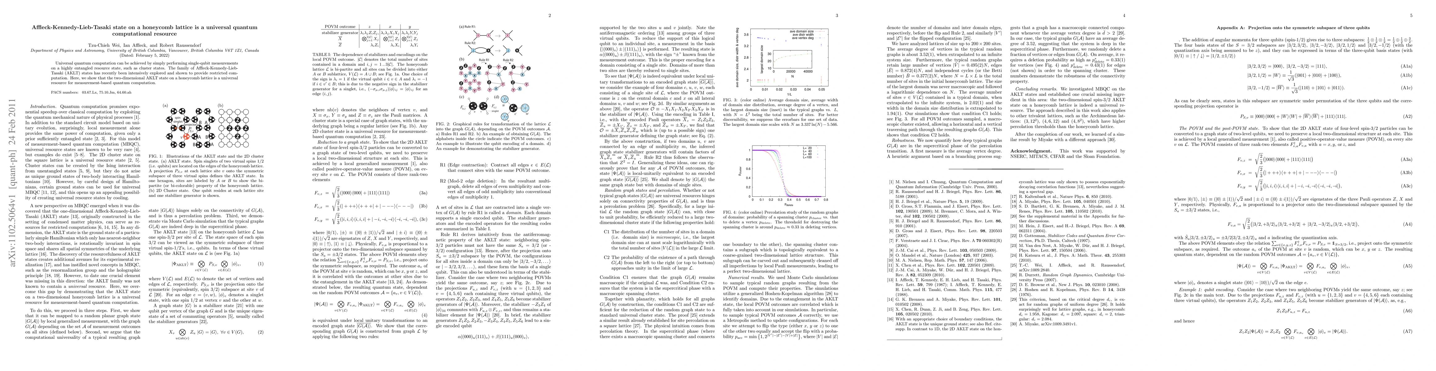 This paper demonstrates that the two-dimensional Affleck-Kennedy-Lieb-Tasaki state on a honeycomb lattice can serve as a universal resource for measurement-based quantum computation, enabling universal quantum computation through single-qubit measurements.