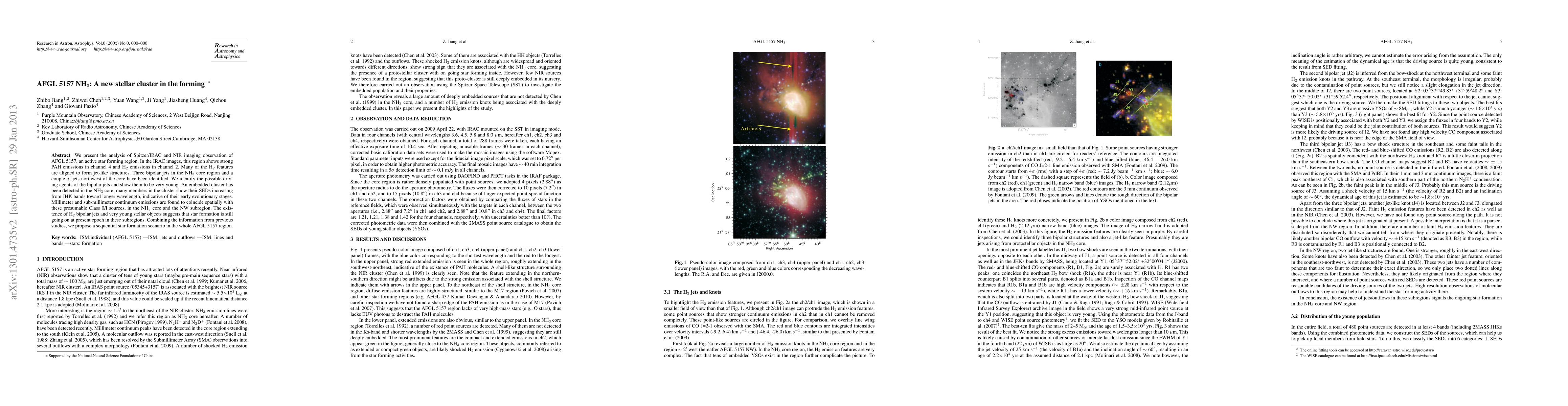 This paper analyzes Spitzer/IRAC and NIR observations of AFGL 5157, revealing strong PAH and H$_2$ emissions, bipolar jets, and an embedded cluster of young stars. The findings suggest ongoing star formation and propose a sequential star formation scenario for the region.