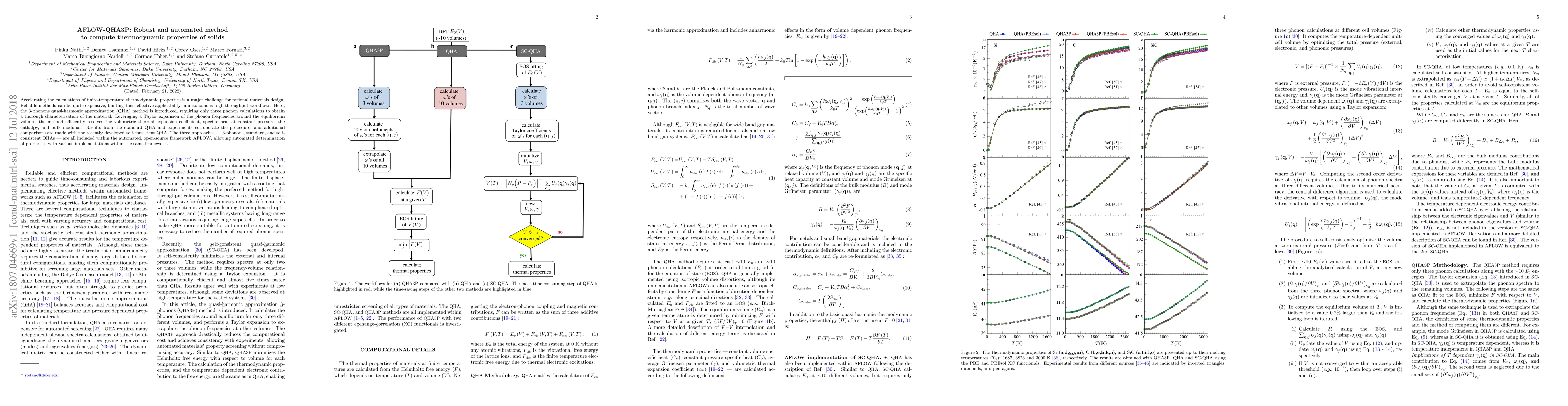 Accelerating the calculations of finite-temperature thermodynamic properties is a major challenge for rational materials design. Reliable methods can be quite expensive, limiting their effective applicability in autonomous high-throughput workflows. Here, the 3-phonons quasi-harmonic approximation (QHA) method is introduced, requiring only three phonon calculations to obtain a thorough characterization of the material. Leveraging a Taylor expansion of the phonon frequencies around the equilibrium volume, the method efficiently resolves the volumetric thermal expansion coefficient, specific heat at constant pressure, the enthalpy, and bulk modulus. Results from the standard QHA and experiments corroborate the procedure, and additional comparisons are made with the recently developed self-consistent QHA. The three approaches - 3-phonons, standard, and self- consistent QHAs - are all included within the automated, open-source framework AFLOW, allowing automated determination of properties with various implementations within the same framework.