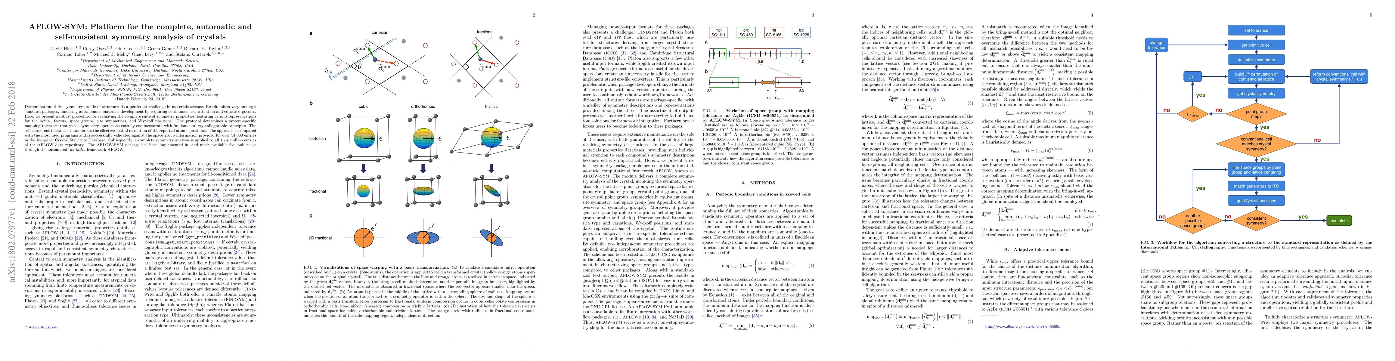 The AFLOW-SYM platform automates the comprehensive symmetry analysis of crystal structures, ensuring consistent and accurate results by determining a system-specific tolerance. It successfully validates against a large database and is now publicly available through the AFLOW framework.