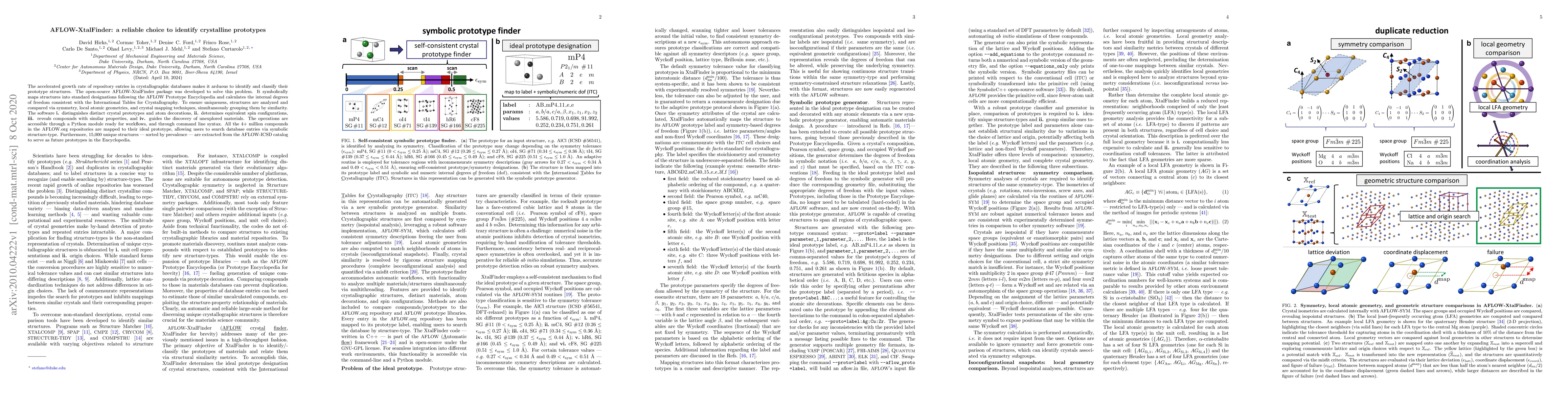 The AFLOW-XtalFinder package is an open-source tool designed to identify and classify crystalline prototype structures from rapidly growing crystallographic databases. It maps structures to standard designations, analyzes symmetry and local atomic geometries, and facilitates the discovery of unexplored materials.