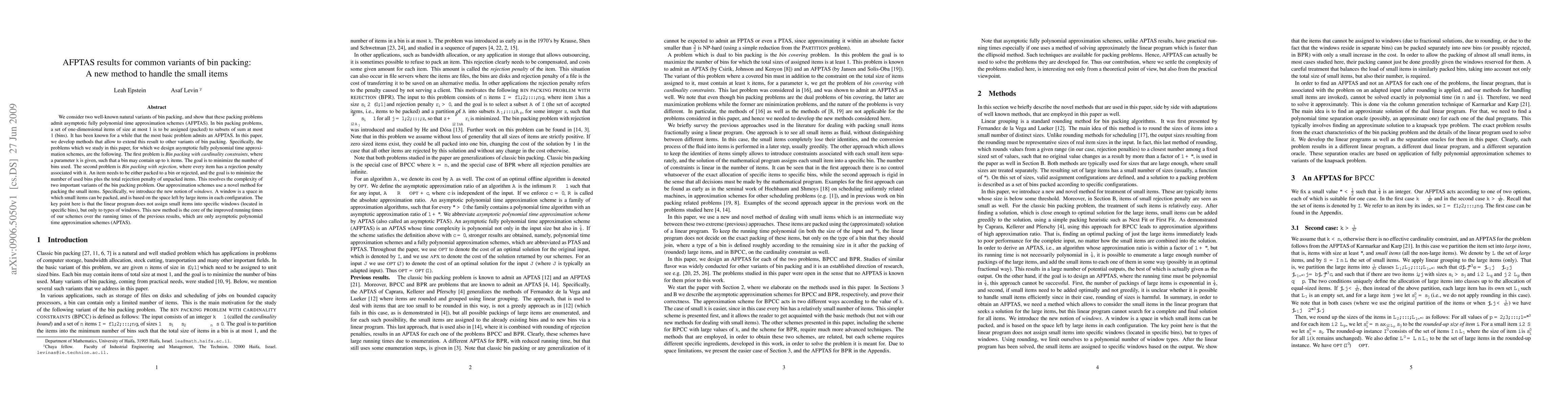 This paper develops asymptotic fully polynomial time approximation schemes (AFPTAS) for two variants of bin packing: "Bin packing with cardinality constraints" and "Bin packing with rejection." It introduces a novel method for efficiently handling small items, leading to improved running times compared to previous polynomial time approximation schemes (APTAS).