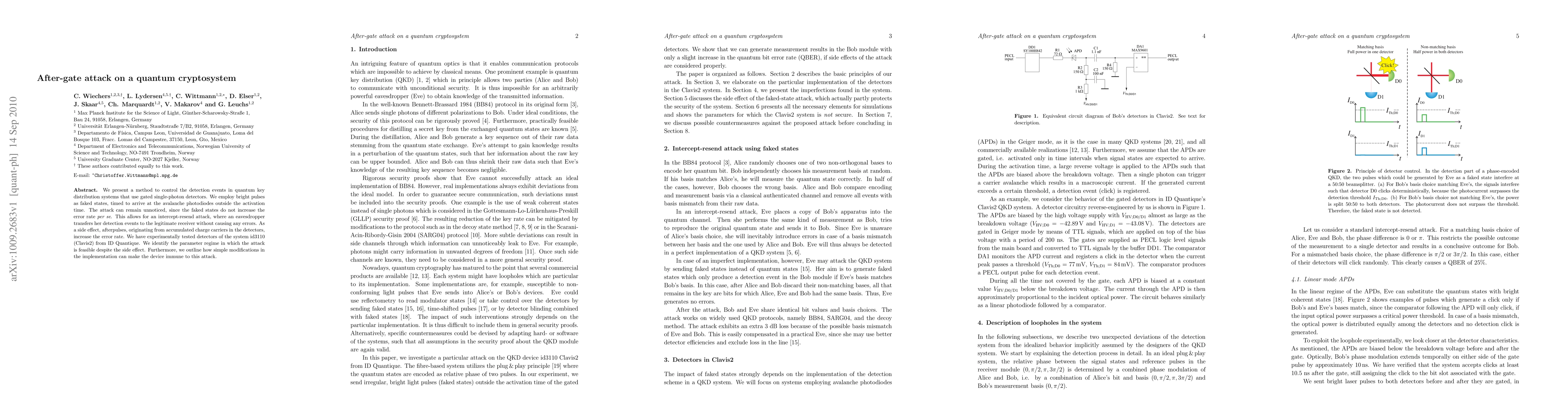 Researchers discovered an attack method on quantum key distribution systems using gated single-photon detectors, allowing eavesdroppers to intercept encrypted data without increasing error rates. They also identified a parameter regime where the attack is feasible and proposed simple modifications to make the device immune.